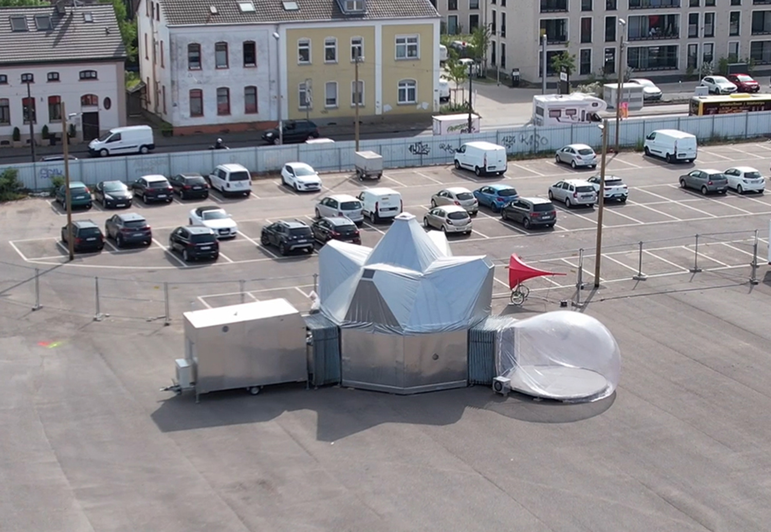 Das Tragwerk ist als wirtschaftliche und langlebige Holzständerkonstruktion ausgeführt. Außen- und tragende Innenwände übernehmen die vertikale Lastabtragung sowie gemeinsam mit der beplankten Konstruktion die Aussteifung des Gebäudes. Das Dachtragwerk spannt als sichtbare Holzkonstruktion über den Saal und die angrenzenden Nutzungen. Eine Aufsparrendämmung ermöglicht die vollständige Sichtbarkeit der tragenden Elemente und unterstützt zugleich den hohen energetischen Standard des Gebäudes. Punktuelle Auskragungen werden konstruktiv über Aufschieblinge gelöst. Die Gründung erfolgt über eine bewehrte Stahlbetonbodenplatte in Kombination mit Streifenfundamenten unter den tragenden Wänden.