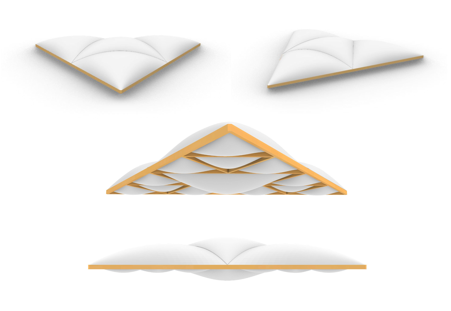 Der Entwurf basiert auf einem gleichseitigen Dreieck mit je rund 15 Metern Seitenlänge. Die Geometrie ermöglicht eine in alle Richtungen gleichwertige Orientierung verankert den Pavillon wie selbstverständlich zwischen Wasserbecken, Baumgruppen, Parkwiese und dem Haus der Kulturen der Welt.